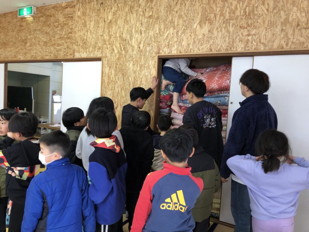 今日も昨日たくさん遊んだからかみんなぐっすりでした!まずは寝袋の片付けからスタートです。