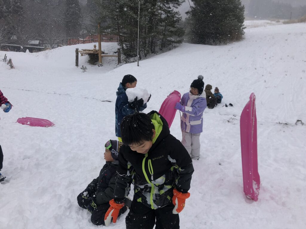 雪あそびでは、そりすべりやそりの盾を使って雪合戦などをしてあそびました!