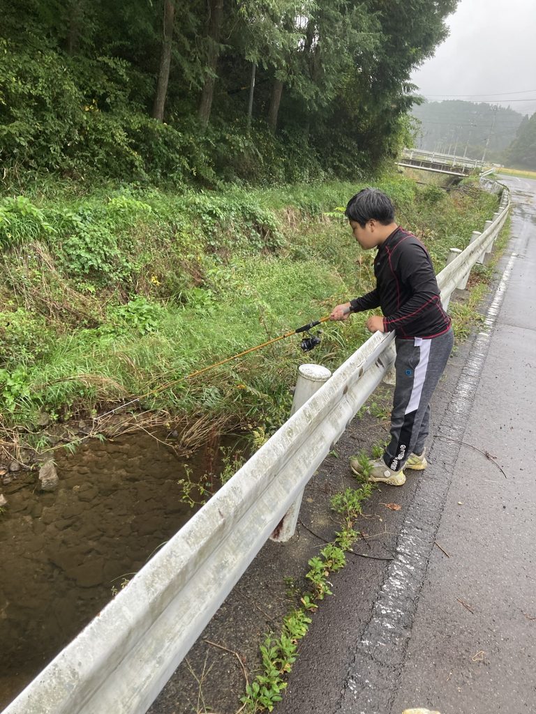 途中、魚が釣れそうな場所について、みんなで確認しながら鬼谷湖を目指しました!