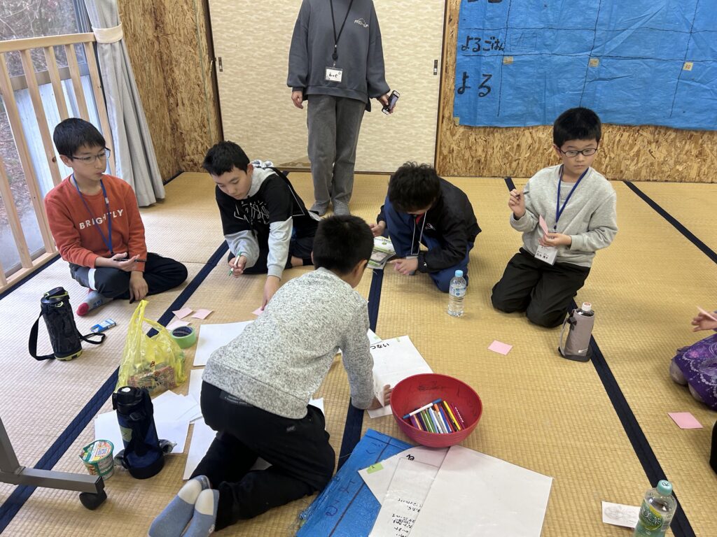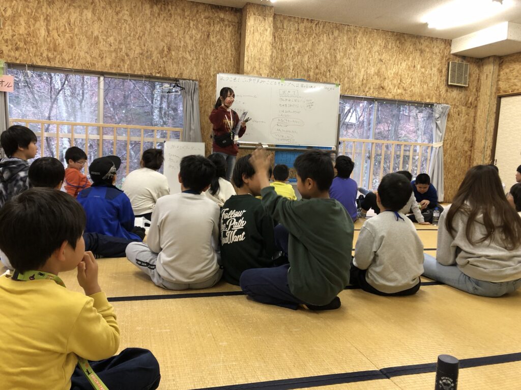 ランチを食べ終えると、キャンプのおきてをみんなで決めて、班ごとに自己紹介をしました!