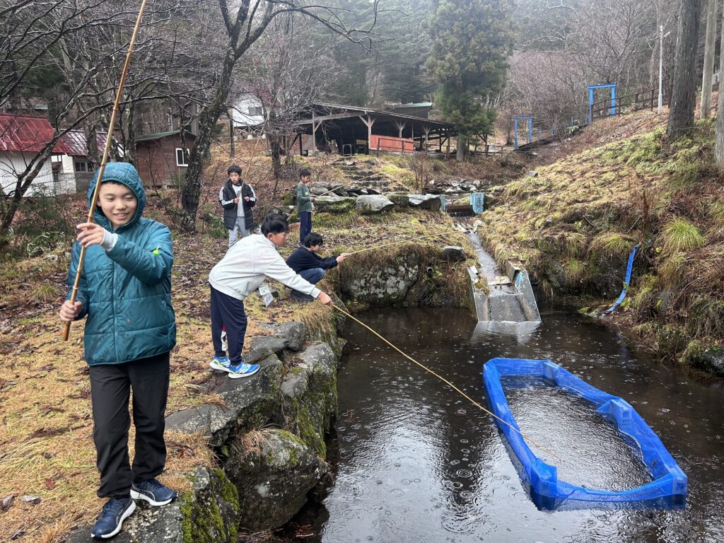 最初の遊び時間ということで、外に遊びに行く子がたくさんいました!1日目から釣りに挑戦している子もいました。何人かは釣れたようですよ!