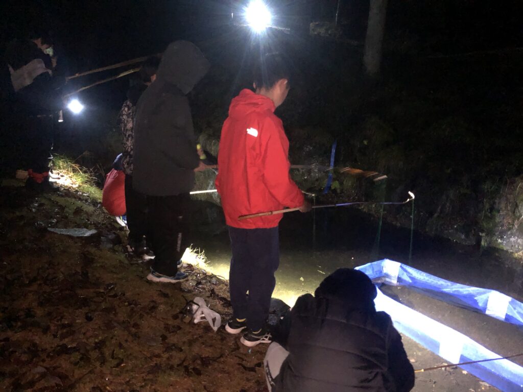 釣りでは、なんと暗い中でも魚を釣った子がいました!