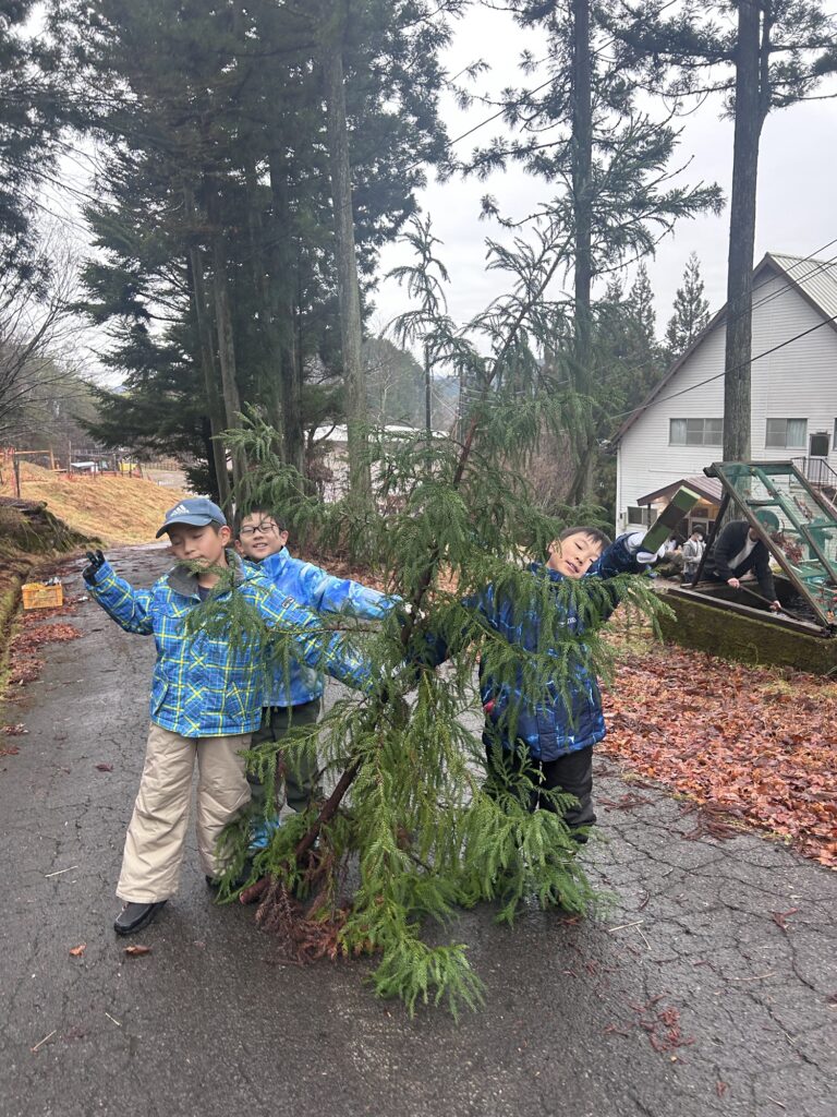森では、クリスマスツリーとなる木を探しに出かけ、アスレチックを楽しんでいました。クリスマスツリーもデコレーションしました。