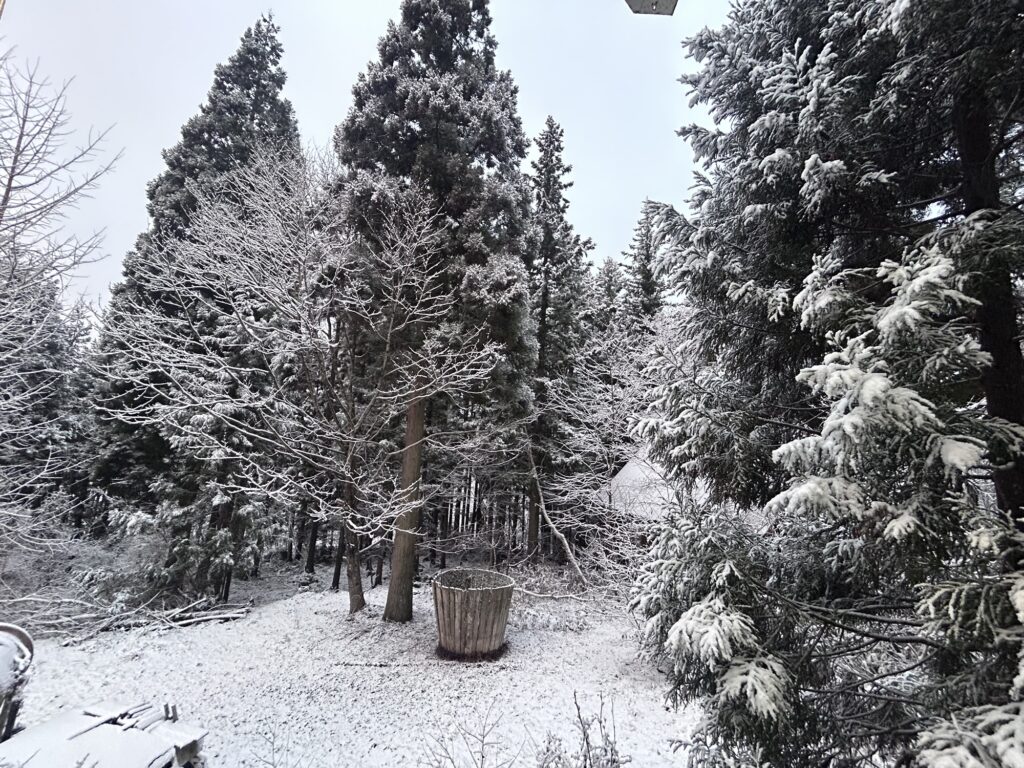 なんと、窓の外には、雪が積もっている景色が見えました!