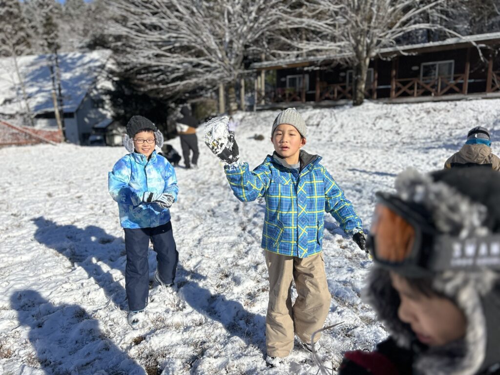 そして、雪あそびでは、雪合戦が白熱していました。