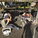 寝袋の片付けや朝の支度、荷物整理をして朝ごはん!